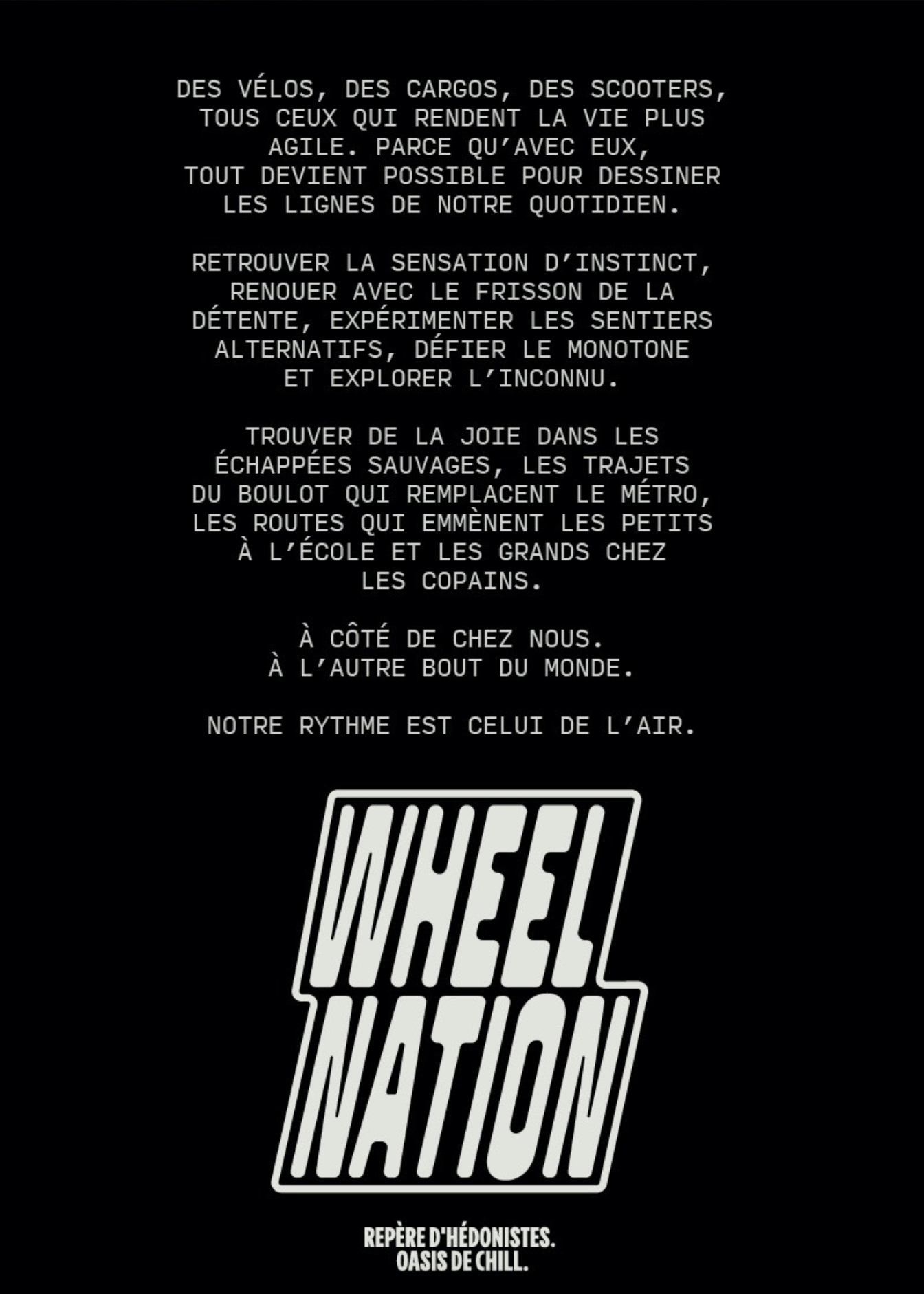 Wheel Nation aime les belles pièces. Les meilleures de leur catégorie, poids plume inclus. Les modèles effrontés, les carrures vintages, les scooters à l’accent italien et les petits nouveaux qui imposent leur style. Des véhicules au caractère bien trempé, comme l’acier. Parce que le goût de la liberté, ça se transmet.